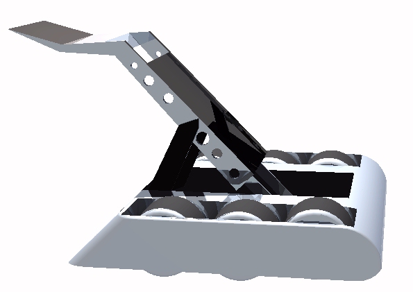 Kali equipped with a biohzard style flipper, a weapon which I have been looking to use for a long time which allows the robot to both turn over opponents and self right in a very elegant fashion. It also has six wheel drive, on a skid steer and designed to be quite fast, as a sacrifice for this however the top armour is only polycarb and hence could be damaged, however the idea behind this robot is to be able to get in and out of trouble easily hence making it a difficult target for opponents. | |